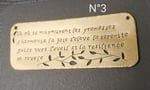 Plaques en laiton, poinçonnée d'une phrase, réalisée à l'aide de poinçons lettre.